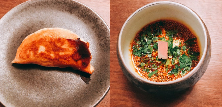 次にサーブされるのが、むっちりボリューム感のある餃子。さっきのおいしいソースをつけてもいい。ジューシーな餃子は、そのまま食べると、さっきのお料理と違ってちょっと甘味を感じるお肉たっぷりの中身。香りのよいソースをつけて食べるもまたよし。餃子好きなもので、とってもおいしくて、ついつい思い出してしまいます・・・