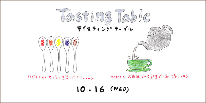 鎌倉Romi-Unie Confitureで定期的に開催しているプチレッスン「Tasting Table(テイスティングテーブル)」。今回はteteriaの大西さんをお迎えして、秋の紅茶の楽しみ方と、いがらしろみによる秋のジャムの楽しみ方をご紹介します。