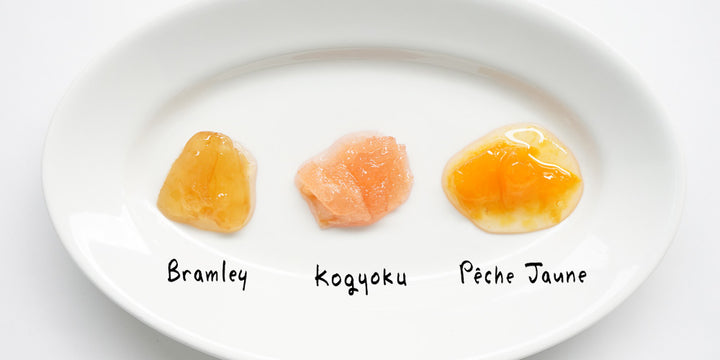 パニエシリーズは厳選した旬の国産フルーツを使って作られるジャム。ほかのフルーツとは合わせずに素材の味を生かしてシンプルにお作りしています。秋の初めに登場したのは黄金桃やりんごなど、香り豊かなフルーツジャム。りんごは品種の違う2種類が登場しているので、どんな違いがあるのか食べ比べていただくのもおすすめです。