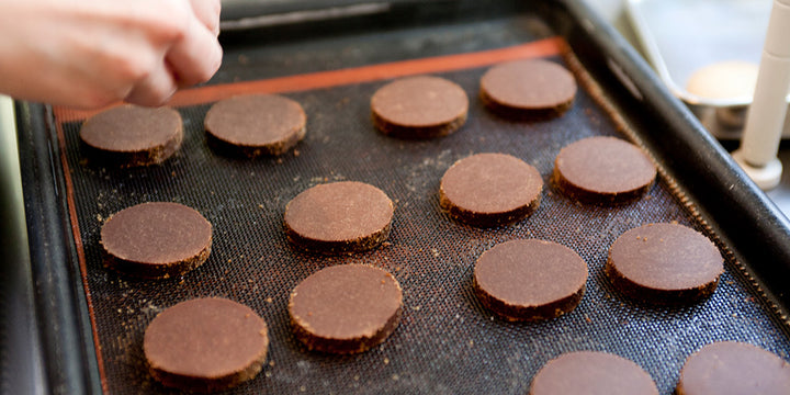 romi-unieのスコーンやサブレを焼く際にも使っているベーキングシートも。裏面の焼き上がりが均一に仕上がるのでグッと本格的なサブレになります。2サイズありますので、オーブンの天板のサイズに合わせてお選びください。