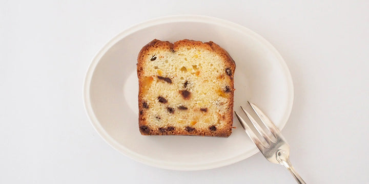 アーモンドペーストを混ぜこんだ生地にチョコチップとオレンジコンフィを合わせたケイク。チョコの濃厚さとオレンジの爽やかな風味が広がります。