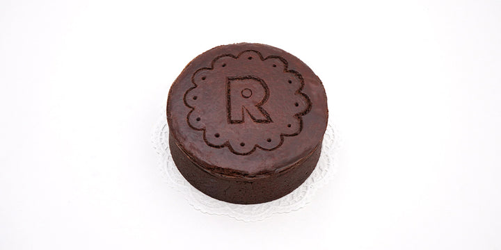 外側の生地はザクザクとしていて心地よく、濃厚なチョコレートクリームとのコントラストが楽しめるスペシャルなガトーバスクです。ガトーバスクの表面には、romi-unieのRの模様を施しました。