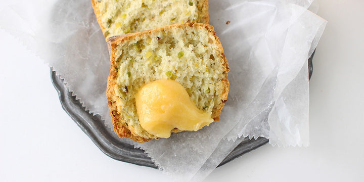 キュッとしたレモンの酸味のあとにラベンダーの香りがふわりとやさしく広がるレモンラベンダーカード。粉モノとの相性がとてもいいので、定番のプレーンタイプの「Scone Maison(スコーン メゾン)と季節限定「Scone Pistache(スコーン ピスターシュ)」とセットでご用意しています。(7月から季節のスコーンメニューは変わります)