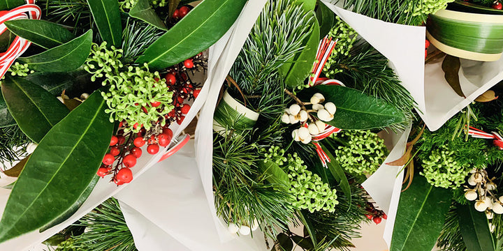 お正月をイメージしたかわいらしいブーケがずらりと並びます。