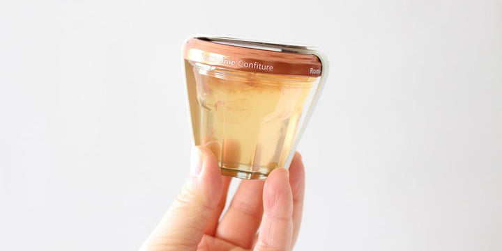 フランスでは、果物のエキスをベースにしてつくる「ジュレ」というカテゴリーがジャムのなかにあって、りんごをはじめフランボワーズやグロゼイユなどでもつくられます(ロミ・ユニでお正月にお出ししている「ボナネ」はグロゼイユのジュレがベースです)。果肉がゴロゴロしたジャムに慣れていると、ジュレは具なしに見えて、物足りなく感じるのか、日本では手が伸びない方もいらっしゃるようです。するっとして透明感があって、清らかな味わいは体験してみないとわからないおいしさ。Sakuraは、ジュレのよさを知っていただく入門編としてもおすすめです。