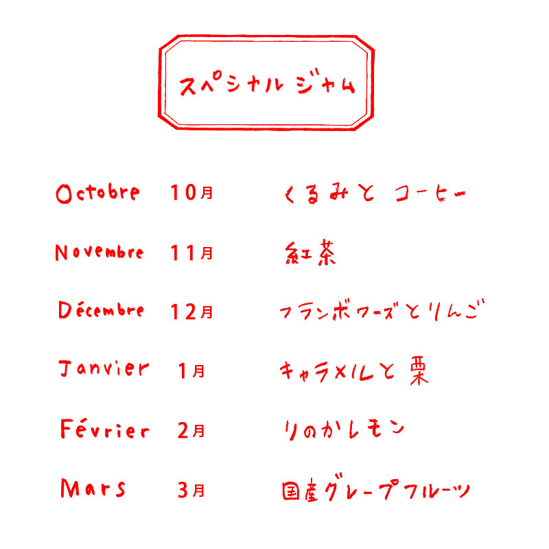 2種類のジャムのうち、1種類はその時期にWeb Shopではお取り扱いのないスペシャルジャムをお届けします。